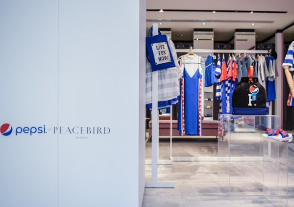 太平鳥品牌戰(zhàn)略3:跨界合作。如與百事可樂合作的聯(lián)名款時裝的首次發(fā)布。太平鳥女裝推出的emoji(表情符號)系列,童裝Mini Peace的賽車總動員系列、男裝的怪鴨系列、樂町的黃景瑜合作系列,都與年輕人喜歡的文化元素密切相關。